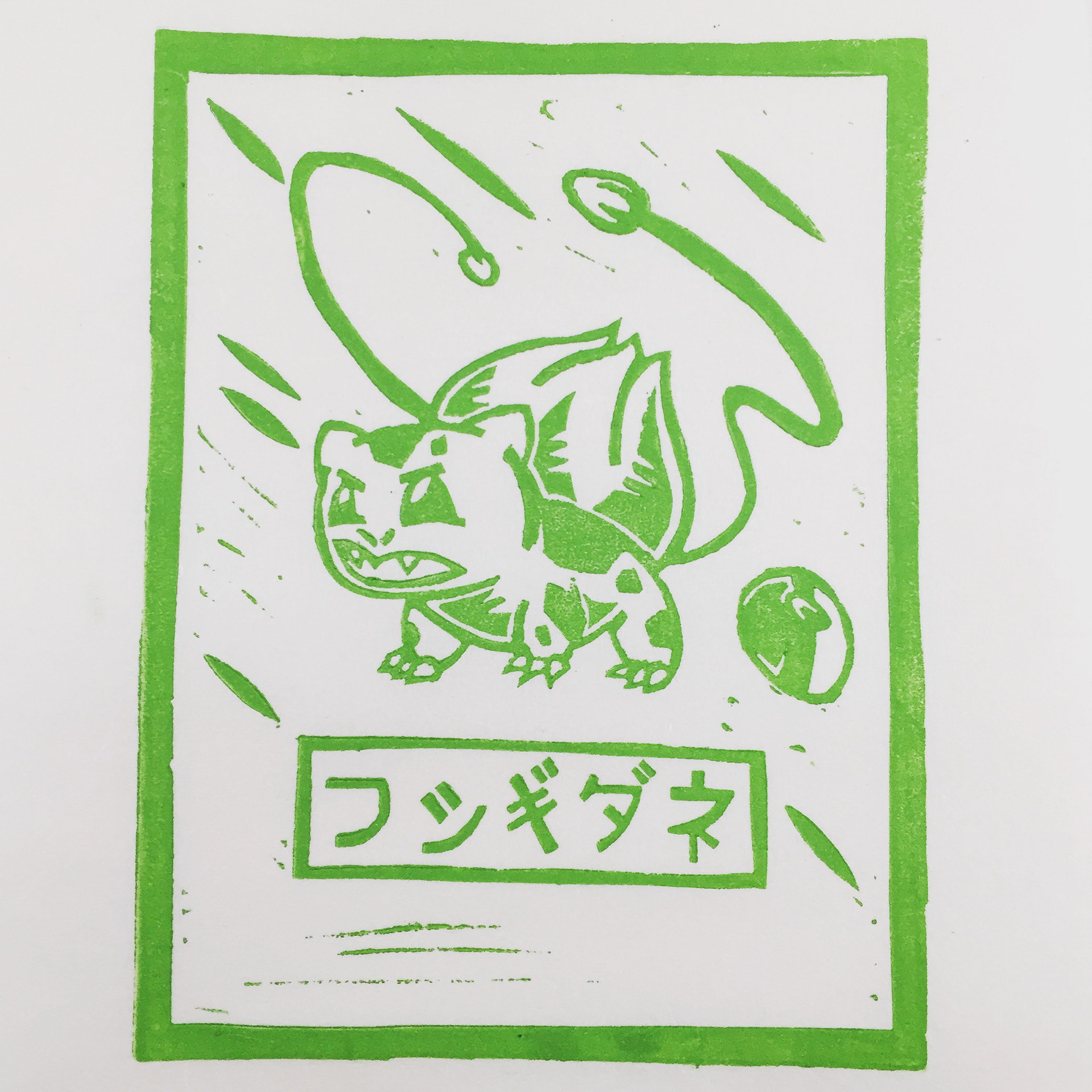 Fan art of Pokemon characters. Woodcut Print. Personal use only.